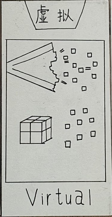 “虚拟牌(virtual),辅助类卡牌,能够使二维游戏里的事物出现在现实,还能随意修改别人的数据,例如某个人被设置,被打两下就会死,那么他无论受到人为多重的伤害,就都会去世,当然这种Bug技能消耗也多,如果使用者长期使用,还可能会过度依赖此能力,导致实力成长缓慢。