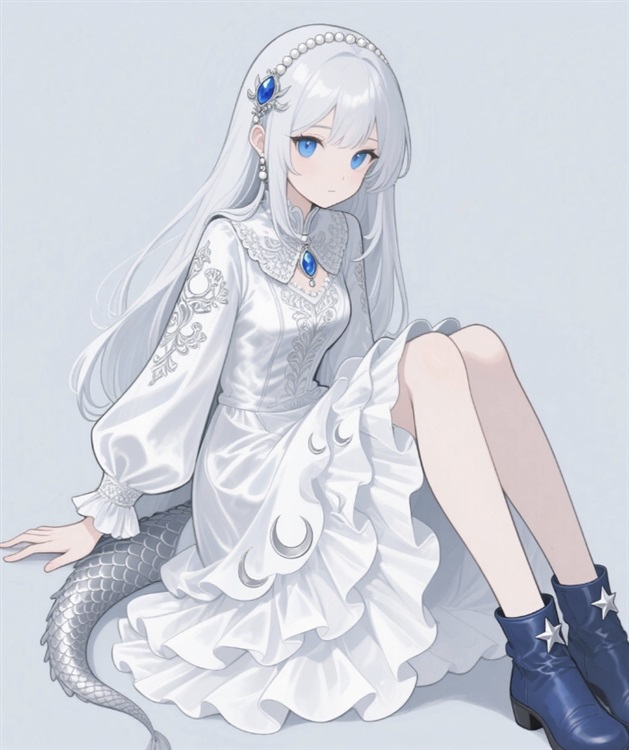 初生的鳞片覆盖全身,不同于成年银龙那种坚不可摧的水银金属冷光,她的鳞片带着一种柔软的、珍珠母贝般的温润质感,在昏暗的风雪天光下,隐隐流转着内敛的银芒。尚未完全硬化的龙角稚嫩地弯曲着,小巧玲珑。然而,最吸引冰爪目光的,是那龙角根部挂着的物件——一枚戒指。